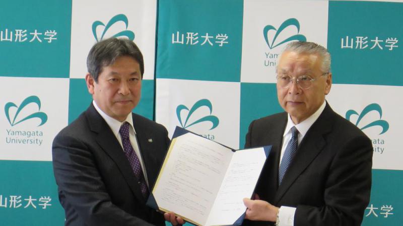 食品分野の研究及び技術開発において連携を強めることで地域食品産業の振興を図り、地域の経済発展に寄与することを目標としたもので、今後、共同研究プロジェクトを推進し、時代のニーズにマッチした、新たな食品の製造開発を目指します。また、学生の県内定着に向けてインターンシップなど人材交流も推進していくことを目的に、山形大学農学部と山形県食品産業協議会が平成31年4月4日に連携協定を締結いたしました。◇連携協定内容◇