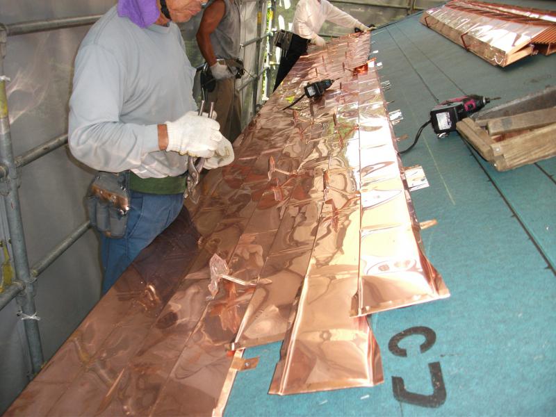 この銅板が、長い年月をかけて緑色の錆び(緑青)が生じて