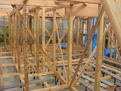 ▼土台取付・1階柱工事