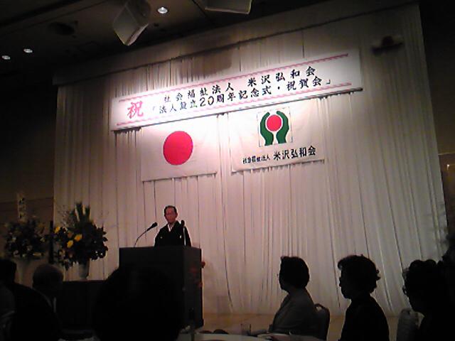 昨日の夜、米沢市の社会福法人の米沢弘和会様の設立20周年祝賀会が行われ、お招きいただきましたので出席をさせていただきました。