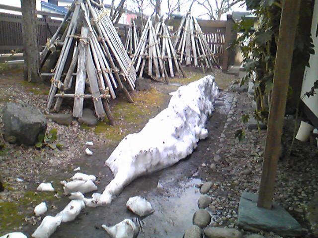 本日、我が家の東側にあった雪。冬の間もこんな程度ならカワイイもんだけどねぇ・・・。