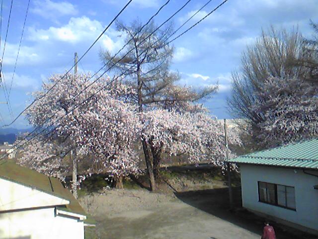 本日、弊社はお休みですが、ちょっと買い物帰りに立ち寄り桜の塩梅を見に来たら、こんな感じだったので弊社の2階通路より撮影しました(携帯電話のデジカメなので写りはいまいちですけど)。