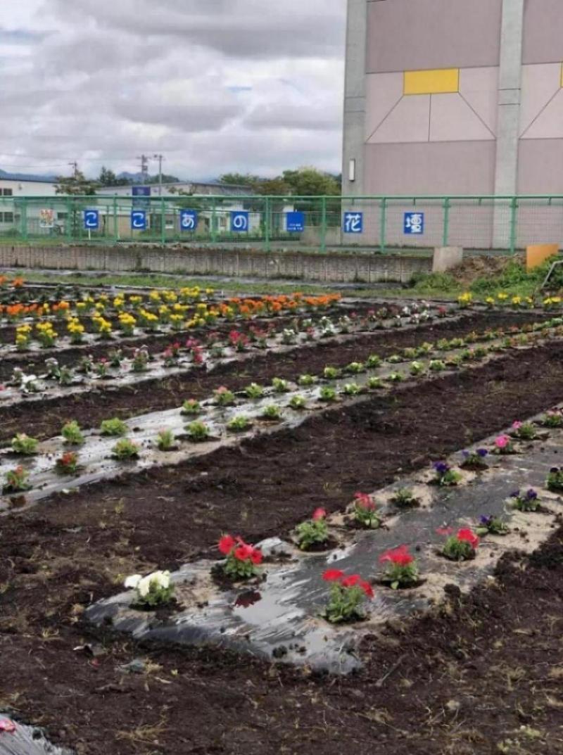 今日は米沢7中のココアの里花壇に花植え作業を行いました。