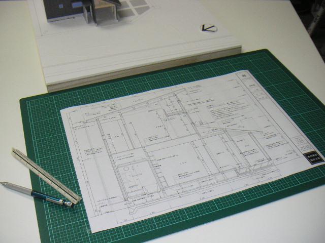 写真は、建物の高さ方向の納まりを表している矩計図(かなばかりず)。まもなく住宅瑕疵保険が施行されるので、最近はこの図面の中にその設計施工基準を満たしている記述をあえて入れ込んでいます。