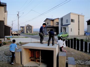 ▼子ども達とお庭。