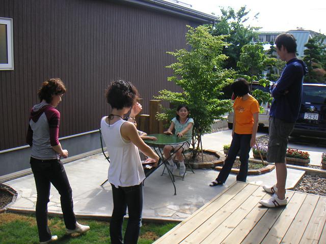 家族ぐるみのお付き合いをさせていただいてますので、僕の家族も遊びに伺いました。子供たちはテラスのテーブルがお気に入りのよう。
