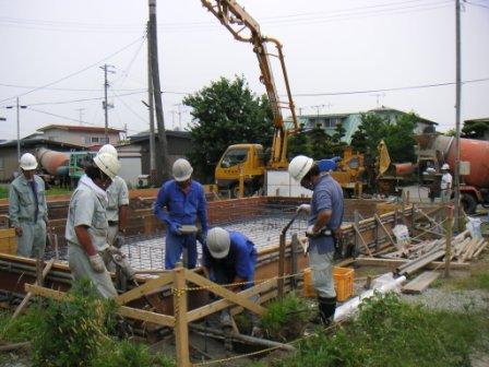 ▼梁の見える家 コンクリートの打設(だせつ)立会い