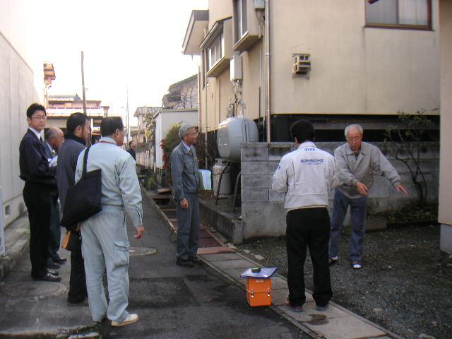 各工種の担当者に集まっていただき、現地を見ながら一発で打合せ・調整を行おうと、クライアントのお父様にも立ち会っていただきました。全ての工種が集まったので、あまりの数にちょっと驚いてしまいました。駐車場も満杯。でも、一度で各取り合い・問題点が解決されたので、こういうやり方も案外いいかも、と思いました。