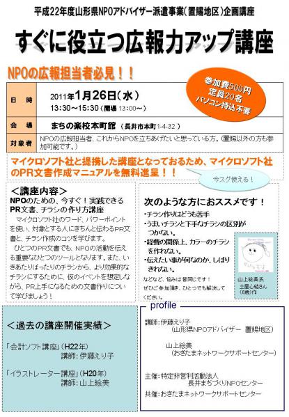 ![]() 2011.01.14:Copyright (C) 長井まちづくりNPOセンター「あやっか」