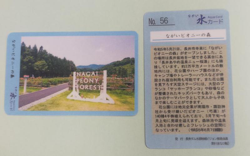 NO56は、「ながいピオニーの森」です。※ピオニーとは、「芍薬」です。野川まなび館を利用した方、展示室を見学した方への記念品として無料で配布しています。ご希望の方は、事務所までお声がけください。※発行年度内は無料で配布しています。次年度からは50円の協力金を頂いています。※郵送による配布は受け付けておりませんのでご了承ください。発行 長井ダム水源地域ビジョン推進会議