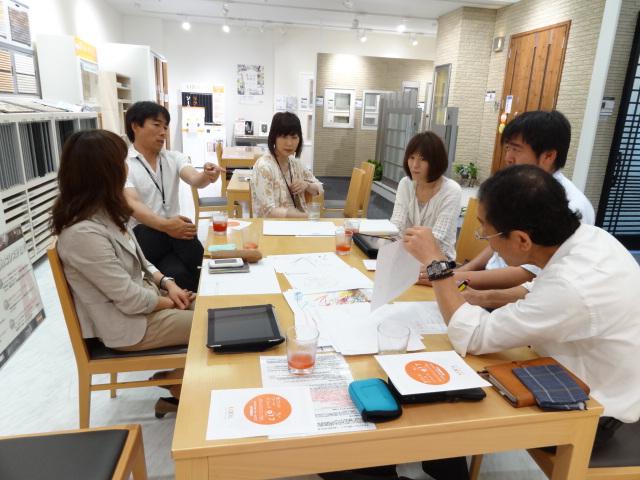 子供たちが描いてくれた“未来の家”BDAC山形メンバーで感想を発表しあっているところです。力作ぞろいの作品は、『BDAC山形ひろば』で公開中です!