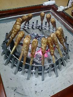 柔らかめに炊いたうるち米を木の串につけて、胡桃味噌をぬっていろりで焼き色をつけて食べます。