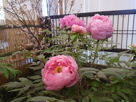 ぼたんと啓翁桜が仲良く咲いています(*^^*)