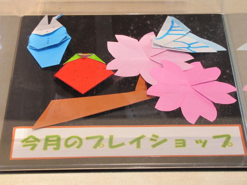 "いちご""あげはちょう""桜のはなびら"変わったところでは"服をきたうさぎ"のおりがみ体験が無料でできます。