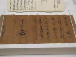 秀吉が満山(領国全体の山?)から鷂(メス)のひなどり二羽、兄鷂(オス)三羽を献上した上杉景勝への礼状。ひなどりから鷹狩に適した鷹を育てていきました。秀吉は全国の優秀な鷹の独占を図りました。特に有名な産地には確保及び輸送体制を整えています。これによって秀吉の諸大名との主従関係や天下人としての地位が確認されました。