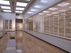 本屏風は、東京大学史料編纂所の資料技術保存室スタッフ(模写担当)の村岡ゆかり氏が、東博模本を復元模写したものである。メクリの状態で伝来し、左隻第五扇にあたる一枚が失われている東博模本は、模写した奥絵師の中橋狩野家の門人たちの名前が下端に記されており、延宝年間(1673〜81)頃の模写と分かっている。歴博甲本や上杉本と並べて比較し、制作時期の前後関係を検討した結果では、絵画様式、都市表現、風俗表現のいずれの判断からも、歴博甲本より後、上杉本よりも前に制作されたと判断できる。1540年代末〜50年代の京都の景観を示していると考えられており、その失われた原本を制作した画家としては、狩野元信周辺の絵師が想定されてきた。『徳川実紀』から、東博模本の原本は4代将軍徳川家綱の手元にあった「古法眼元信筆洛中図屏風」であることが分かった。この仮説がもしも正鵠を射ていれば、狩野永徳は、祖父元信の洛中図屏風を参照しつつ、上杉本を制作したことになるであろう。東博模本は、これまで以上に重要な作品となったのである。(展示解説より)