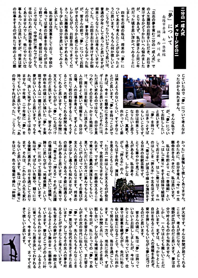 残念ながら実施できなかった二分の一成人式。講話予定の原稿を記念館だよりで紹介した。