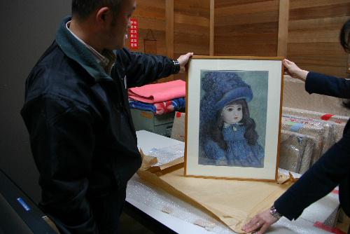 日本画を描いていたが急逝。作品は宮内に住む賢一氏の弟さんのもとで保管されていた。大きな絵ばかり20数点はあろうか。その絵を一時的に記念館の収蔵庫に保管している。額装なっていなかったりカビ、あるいははがれ落ちたりと傷みもあった。