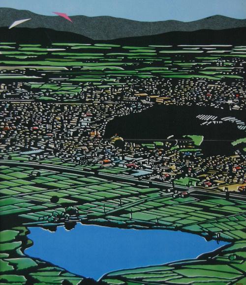 高橋氏はふるさとを数多く切り絵にして描いている。展示できる作品は限られているが、優しさ溢れる作品をごらんいただきたい。