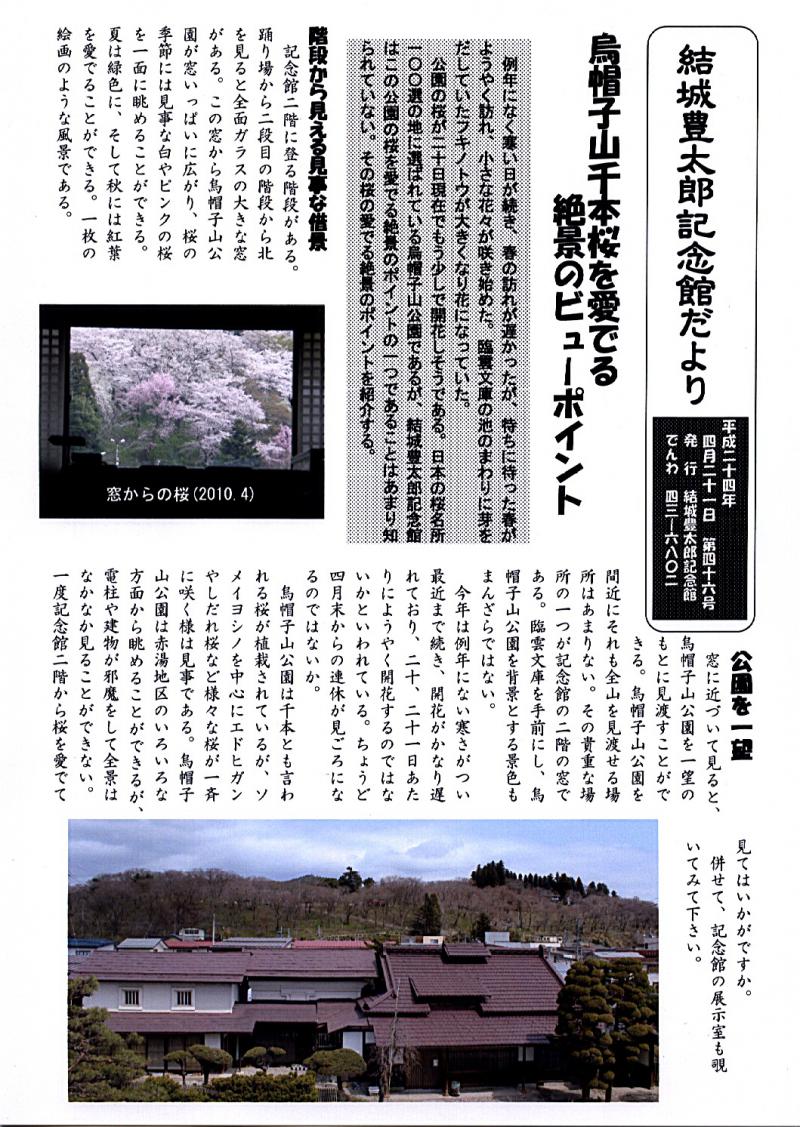 ▼記念館二階は桜鑑賞絶景ポイント 記念館だより46号