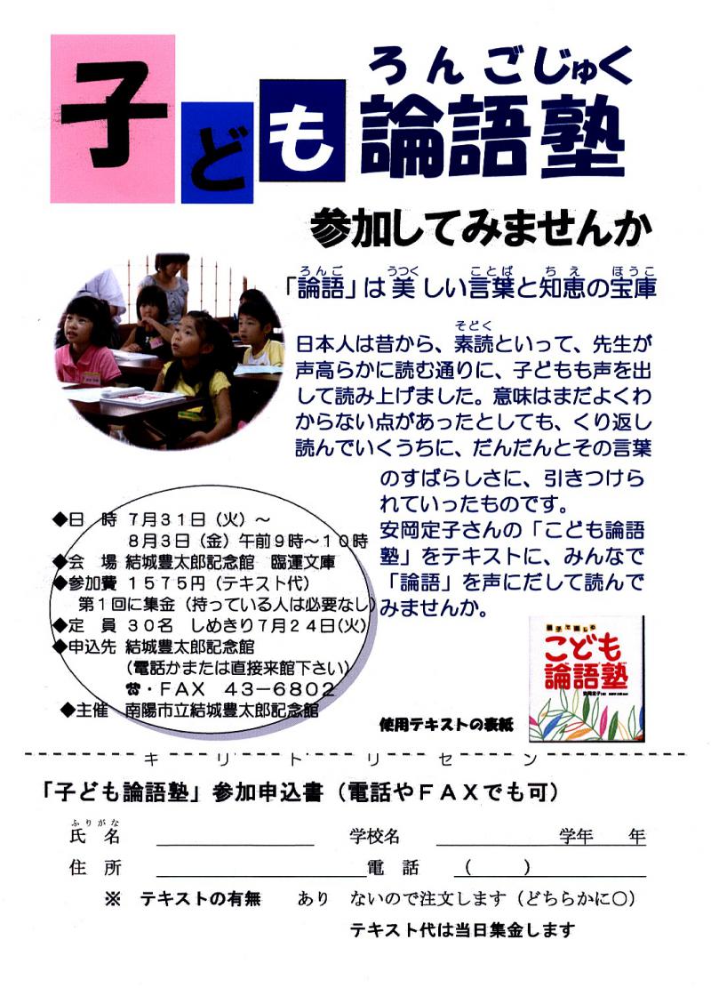 ▼今年も子ども論語塾