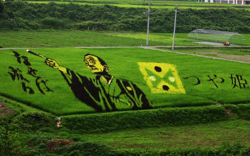 稲の種類による色分けで、田んぼに絵を描いているんだって、