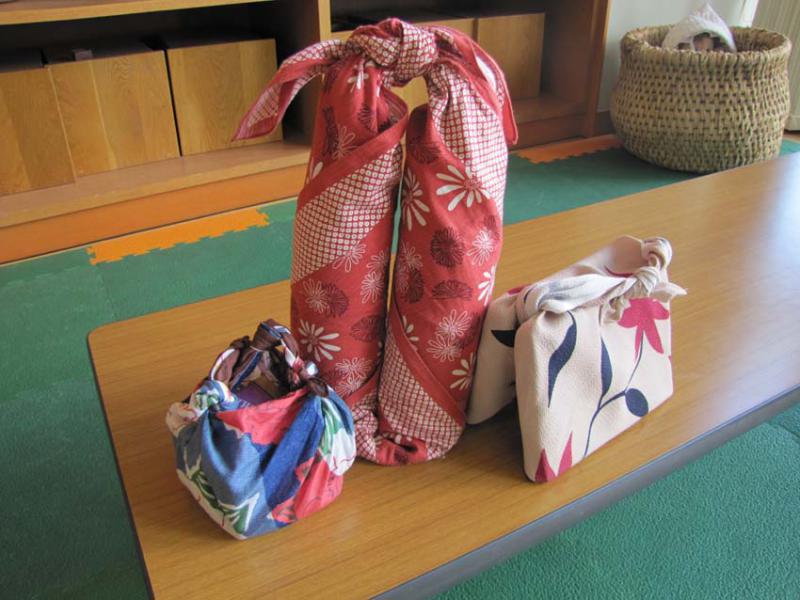 瓶や本を風呂敷で包めば一気にかわいさアップ↑↑しかも便利〜♪