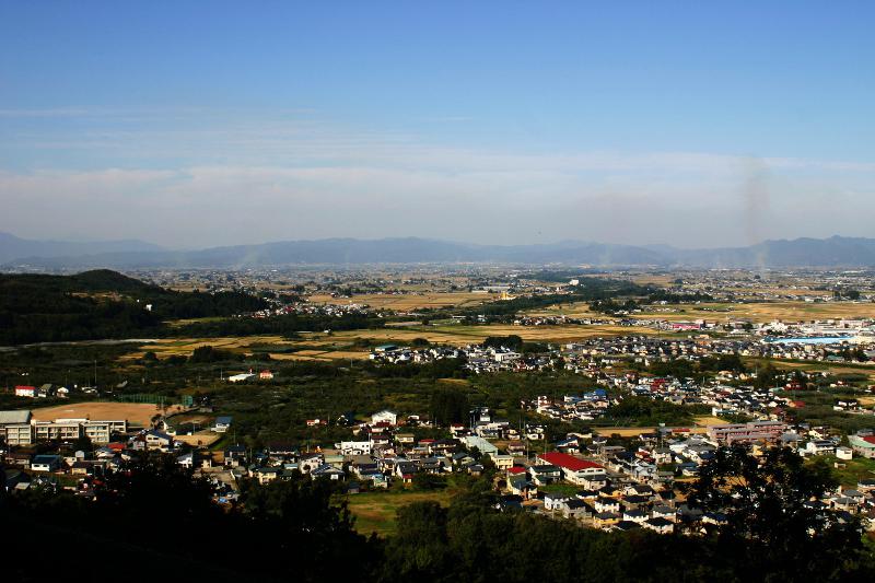 ▼「人繊工業発祥之地」碑がある御成山からの展望