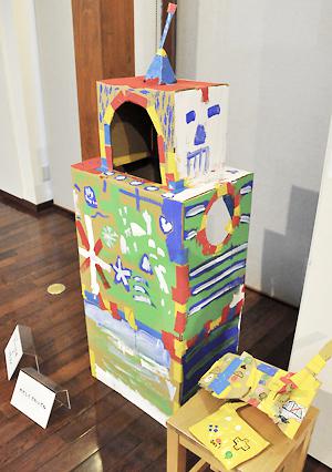 当館で月2回活動している「アートキッズ団」の作品も展示しています。