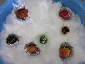 した。ほしうめをいれたり、食紅で色づけをしたり、水のかわりに紅茶をいれてみ