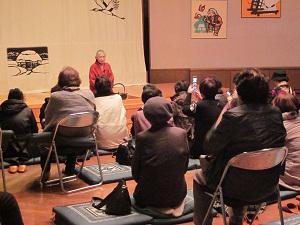華やかな雰囲気で語りが行われました。ミステリーツアーとのことで、次の行先は