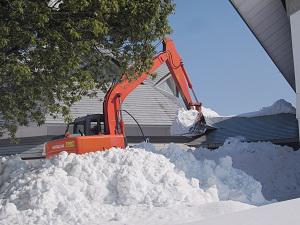 て、ついに、本日、重機(ショベルバックホー)での除雪が行われまし