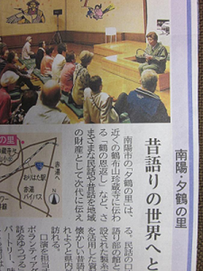 4月20日(土)の山形新聞に、夕鶴の里が「おでかけスポット」で