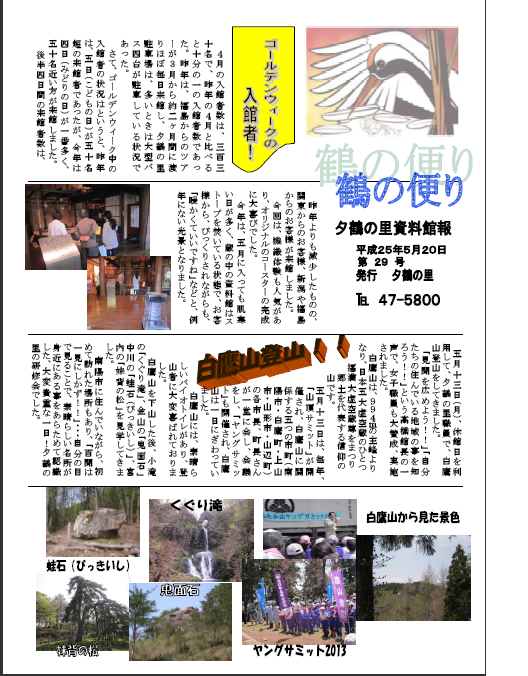 今月は、夕鶴の里職員の研修(白鷹山登山など)の記事が