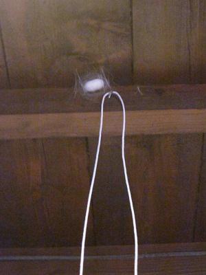 繭になった場所は・・・・なんとまぶしをつるしていた紐をつたって、