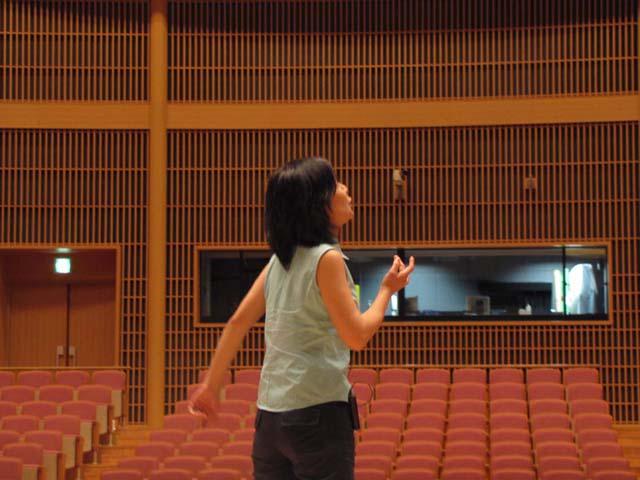 舞台サイズと照らし合わせて、照明効果や音響についての確認作業が行われました。