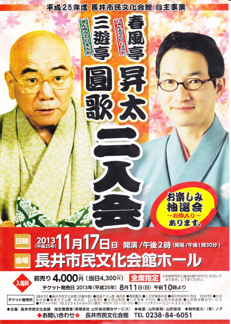 長井市民文化会館ホール 11月17日(日)開演:午後2時 (開場:午後1時30分)
