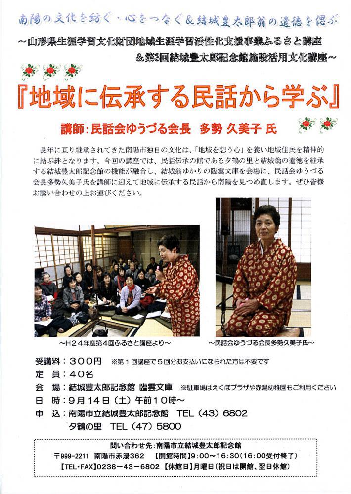 ▼ふるさと講座兼文化講座「地域に伝承する民話から学ぶ」 多勢久美子氏