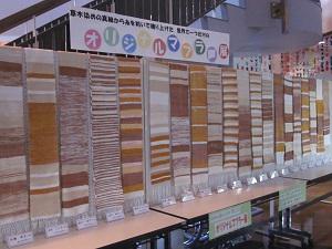 染め織り講習会(全5回)が終了し、受講生が織り上げたマフラーを