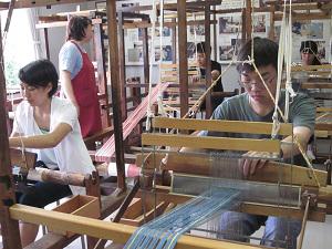 夏合宿で、今年は山形を訪れたとのことで、夕鶴の里では、機織りを
