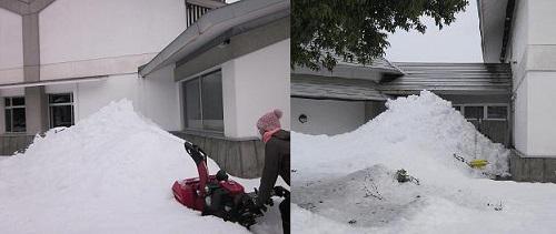 12日(金)には、屋根から落ちた雪に奮闘しました。