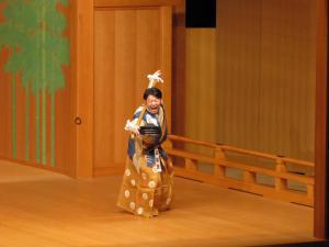 野村万蔵さんはじめ、萬狂言一門の皆さまをお招きして、おこなわれた「仏師」「棒縛」を鑑賞しました。初めに、こども狂言クラブの講師をしている山下浩一郎さんが、狂言を見る時のポイント、楽しみ方、さらには狂言衣装の秘密まで紹介。太郎冠者の腰帯ってネクタイのようなものだったんですね!!続いて、「仏師」。田舎者と詐欺師が話をするところはちょっと難しそうな様子でしたが、お面をつけて仏像になりすました詐欺師が田舎者の注文に応じて、様々なポーズをとるところがおかしく、客席の中で笑いがおこりました。そして、「棒縛」。さすが野村万蔵さん。棒で縛られながらお酒を飲もうとするところ。縛られたまま舞を舞うところ。最後に、棒で主人をからかうところと客席から笑い声が絶えることはありませんでした。狂言の面白さを体験できた素晴らしい1日になれたと思います。お越しくださった皆様、本当にありがとうございました。次回の置賜文化ホールは、大人気のJazzCaféが6月6日19:00からございます。博物館の喫茶コーナーで毎年好評のジャズのひととき。入場料はドリンク付きで1,000円。是非おこしください。