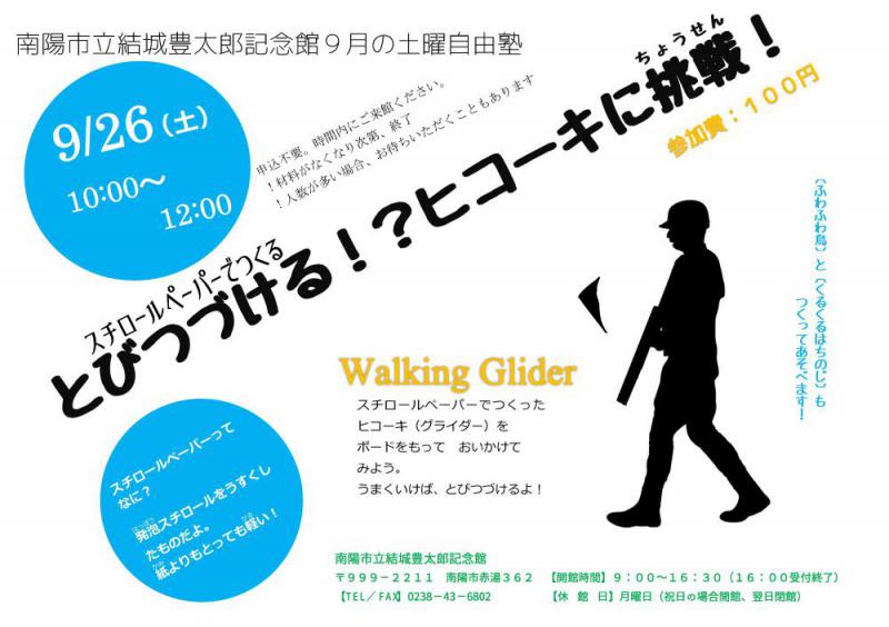 ▼飛び続けるヒコ―キ? 9月の土曜自由塾でつくってみませんか
