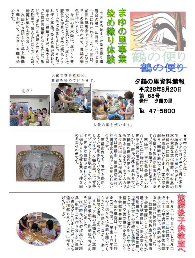 染め織り講習会や昔のあそび、民話まつりのお知らせについて