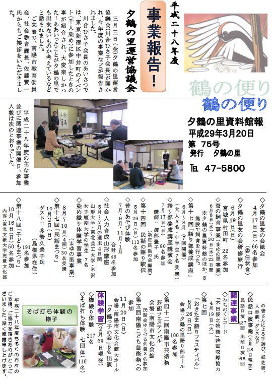 夕鶴の里館報第75号(3月号)を発行致しましたので、