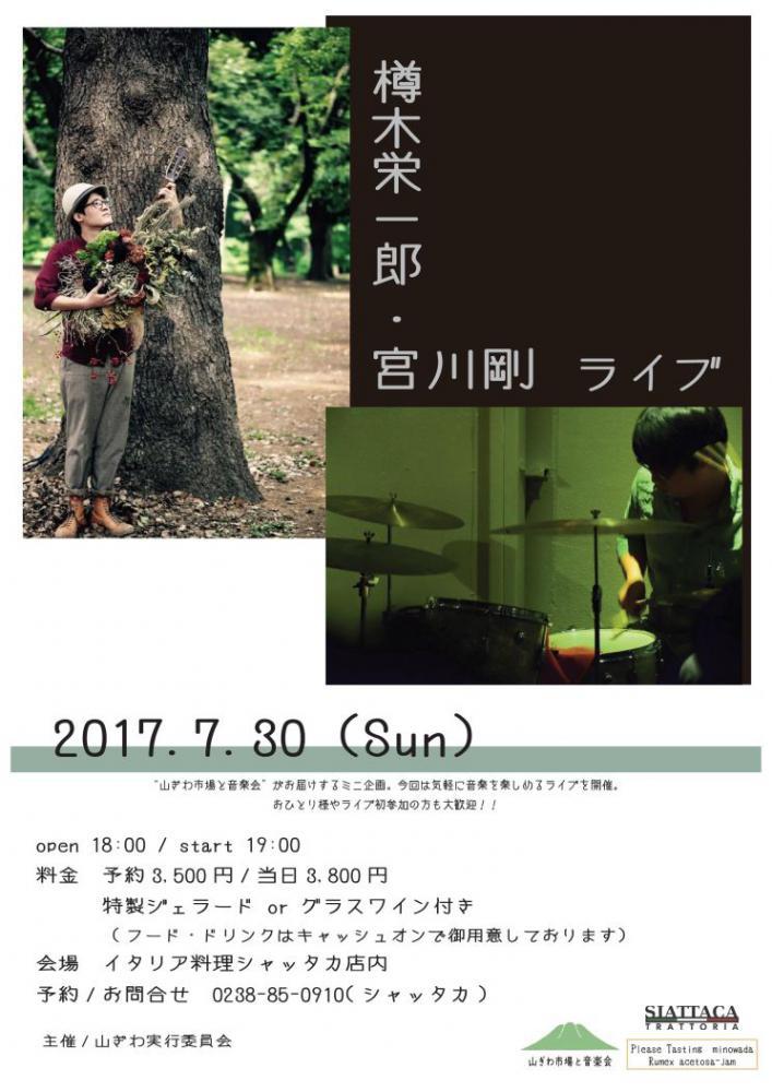 置賜文化フォーラム補助事業”リズムガッコウ2017"主催団体が、白鷹町では珍しいカフェライブを開催します。会場内では地域女性団体によるジャム試食会も行われます。山ぎわミニその1 「樽木栄一郎・宮川剛ライブ」H29.7.30(sun)・イタリア料理シャッタカhttps://www.facebook.com/yamagiwamc/posts/1512536248808742open:18:00/start:19:00料金:予約3.500円/当日3.800円特製ジェラードorグラスワイン付き(フード・ドリンクはキャッシュオンで御用意しております)予約/お問い合わせ:0238-85-0910(シャッタカ)詳しくはこちらPDF(1.7MB)をクリック! ”生の音楽”を気軽に楽しむ地域文化への貢献を目的とした事業ですが、地域店舗への来店動機づくり、地域活動の支援など、まちづくり活動の側面もあるようです。 ●このイベントは置賜文化フォーラム「地域文化振興支援事業」の補助事業ではありません。