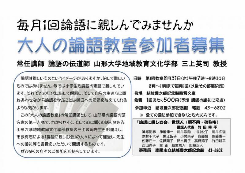 ▼「大人の論語教室」募集開始 早速3名が申し込み