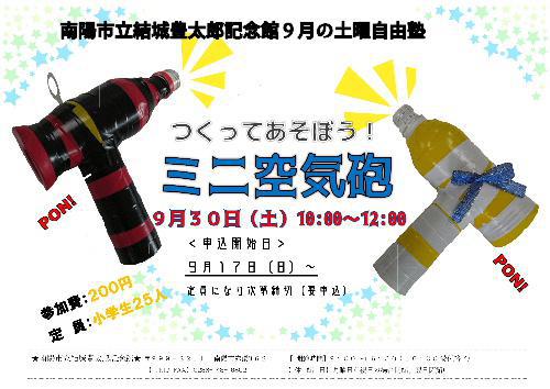 ▼つくって遊ぼう ミニ空気砲 9月の土曜自由塾
