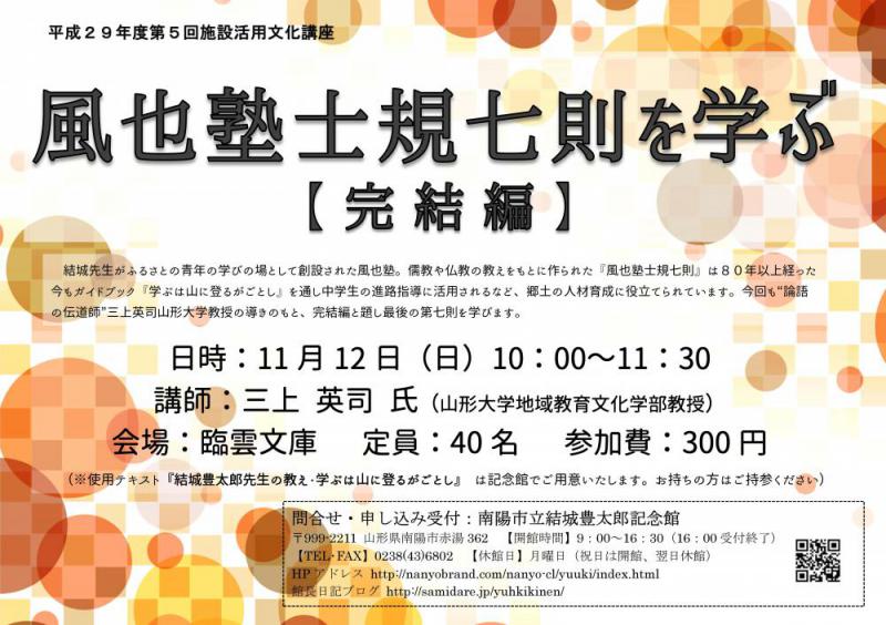 ▼第三回施設活用文化講座「風也塾士規七則を学ぶ 完結編」