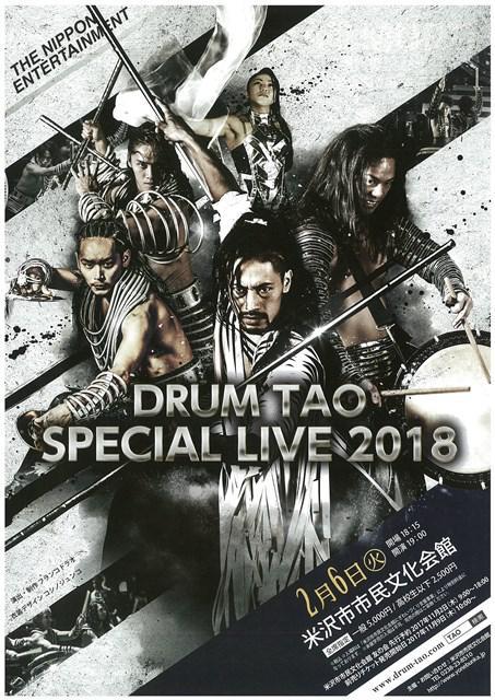 2018年2月6日(火)にDRUM TAO SPECIAL LIVE 2018 が開催されます。DRUM TAO は世界に類のない圧倒的な音表現を持つ「和太鼓」で、世界に通用するエンターテイメントショーを作る!という夢を掲げ1993年結成。2004年に海外進出スタート。圧倒的な“日本の超カッコ良さ”に衝撃を受ける観客続出!! ●日時:2018年2月6日(火)/開場18:15/開演19:00●会場:米沢市市民文化会館●入場料:一般 5,000円/高校生以下 2,500円(全席指定)●お問合せ:米沢市市民文化会館(TEL:0238-23-8510)詳しくはPDFこちら(1.7MB)をクリック!!